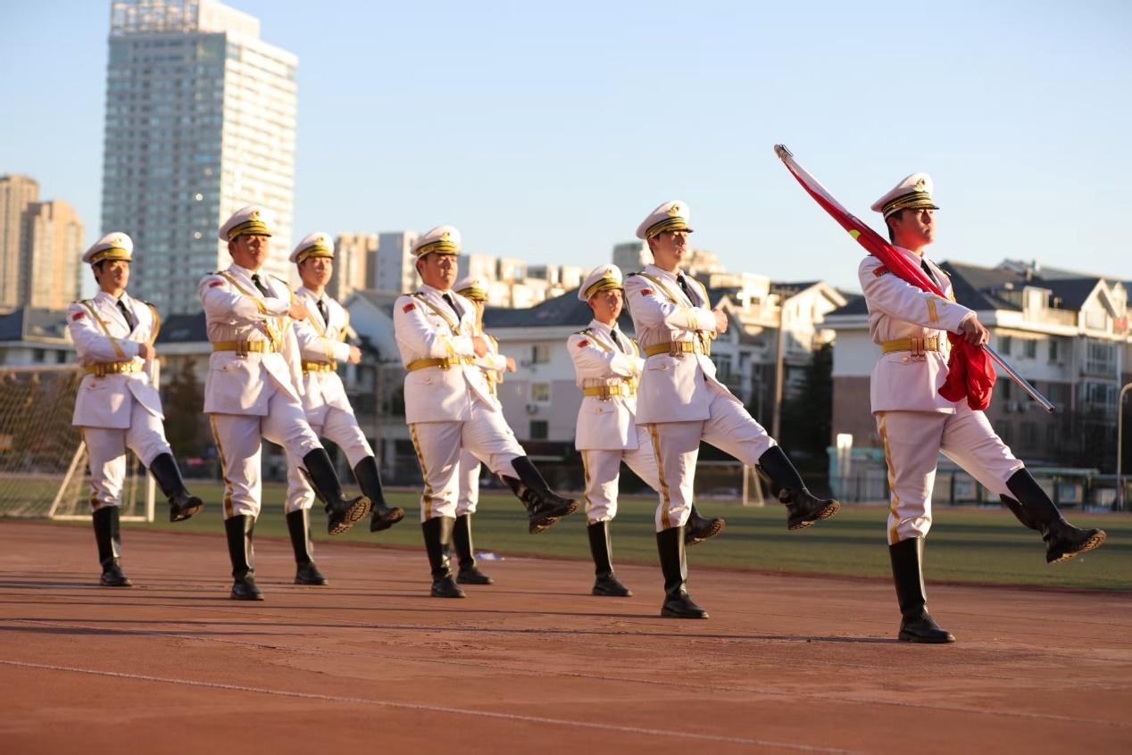 晨光熹微,清风拂过大连海洋大学的操场,全校师生齐聚在这里参加升旗仪式。以海洋事业为引,强调海洋与国家命运紧密相连,随后大连海洋大学国旗班成员身着制服、肩护国旗,从队列中稳步而出。他们身姿挺拔、步伐铿锵,每一步都饱含着对国旗的崇敬。全体师生脱帽肃立,嘹亮的歌声满是对祖国的深情与祝福。