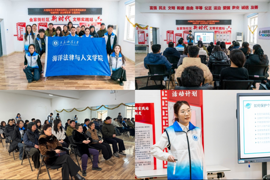 随后,团队转赴金家街社区党群服务中心,为社区居民开展了一场“预防电信诈骗”专题公益普法讲座。讲座结合当前高发的电信网络诈骗典型案例,用通俗易懂的语言揭露常见诈骗手法、讲解实用防范技巧,有效增强了社区居民的识骗防骗能力。此次活动不仅向社区传递了实用的法律知识,也让同学们在服务社会中深化了对专业价值的理解,提升了将专业知识转化为服务民生实践的责任感。