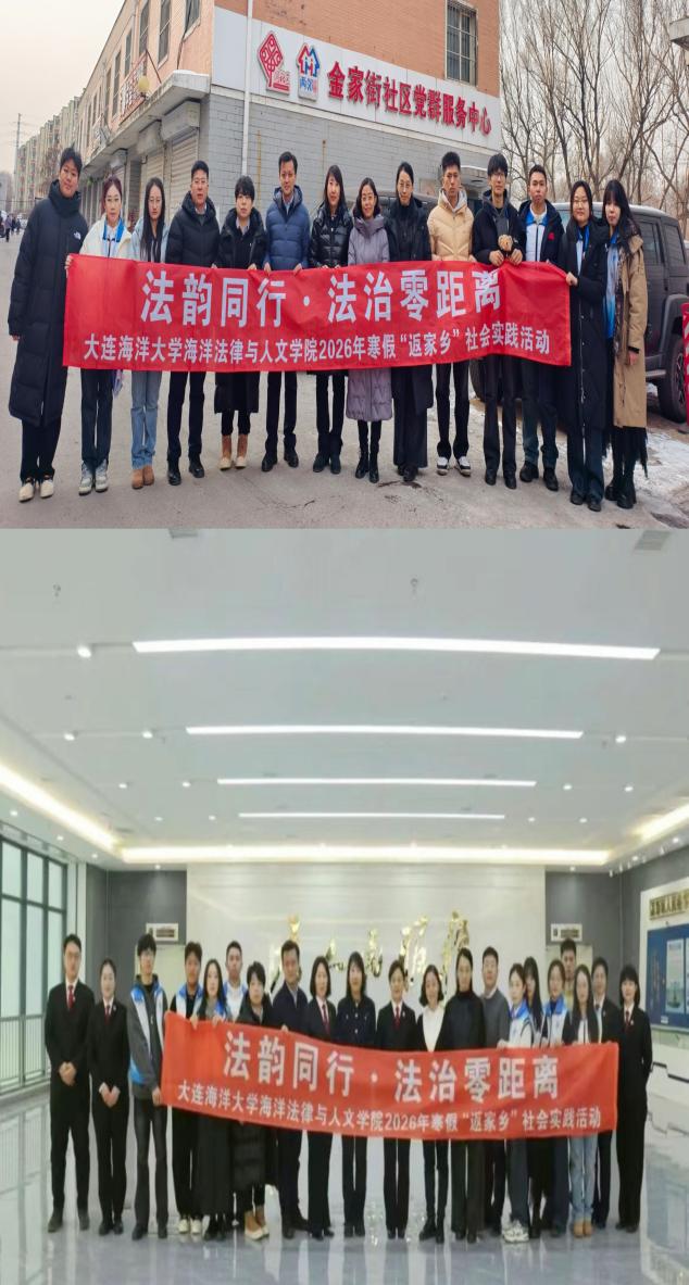 海洋法律与人文学院各社会实践团队,在杨毅、郭昕黎、邱愉珊、张恒毅等老师的指导下,42支队伍、200余名学子,分赴辽宁、内蒙古、黑龙江等4省14地,广泛开展了以红色基因传承、乡村教育振兴、传统文化弘扬、社区公益服务等为主题的“返家乡”社会实践。学子们走进基层法院参与实践学习,深入社区提供志愿服务,返回高中母校开展招生宣传,前往文化场馆进行调研学习。他们在社会大课堂中受教育、长才干、作贡献,将专业所学与社会需求紧密结合,用实际行动服务家乡建设,展现了海法学子昂扬向上、笃行致远的青春风貌。