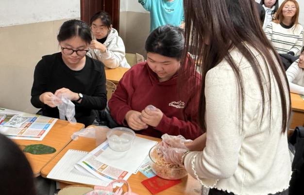 食品科学与工程学院“大海大实践团”,在佟婧绮老师的指导下,走进丹东市凤城市第一中学,开展“趣味科普进校园 食安知识伴成长”主题实践活动。团队充分发挥专业优势,设计了食品安全溯源Vlog科普、果蔬农残快速检测实操、食品标签解读、健康零食DIY、科普动画结合情景游戏等丰富环节,将专业知识转化为生动有趣的体验式教学。让高中生在亲手操作与互动游戏中掌握食品安全知识,树立健康饮食观念,深刻理解“从农田到餐桌”的全链条安全理念,为青少年健康成长保驾护航。