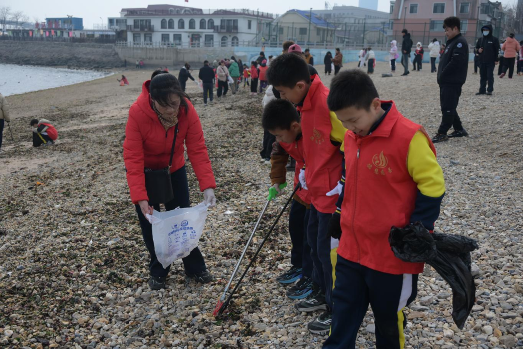 启动仪式结束后,两校区同步开展净滩志愿服务活动。这也是我校师生连续第九年与这片海岸相约守护。志愿者们手持清理工具,沿着滩涂细致捡拾拉圾,从显眼的塑料瓶、废弃渔网,到隐蔽的烟蒂,均未遗漏。志愿者们发扬不怕脏、不怕累的精神,以严谨细致的作风清理卫生死角,用实际行动守护蔚蓝海岸。经过集中清理,海岸线环境焕然一新,滩涂面貌整洁有序,岸线生态景观得到显著提升。